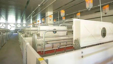 Adjustable farrowing crate is adaptable for pigs of different sizes Scientific design, high quality, easy installation The PVC fence has good thermal insulation effect, adapting to various troughs, and is easy to disassemble Easy to clean and disinfect preventing ASF effectively Suitable for pig farms of all sizes